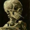 Description: Smoking skeleton from a Vincent van Gogh painting